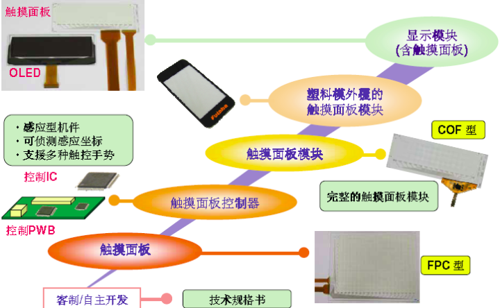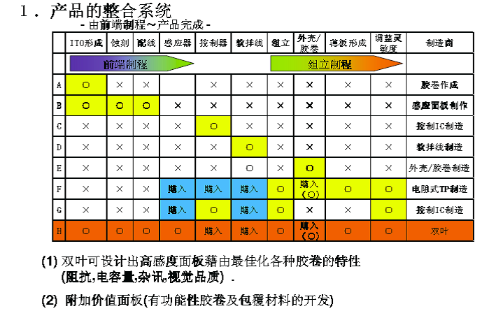 - 单片玻璃基板结构型静电容量式触摸屏。