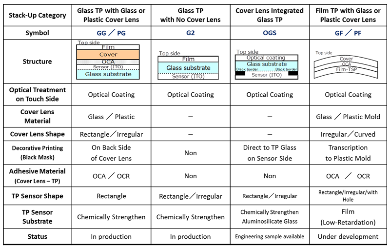 - 符合标准车用规格,与易于客制化之G2/GG/PG/OGS结构。 (参见本册封底)