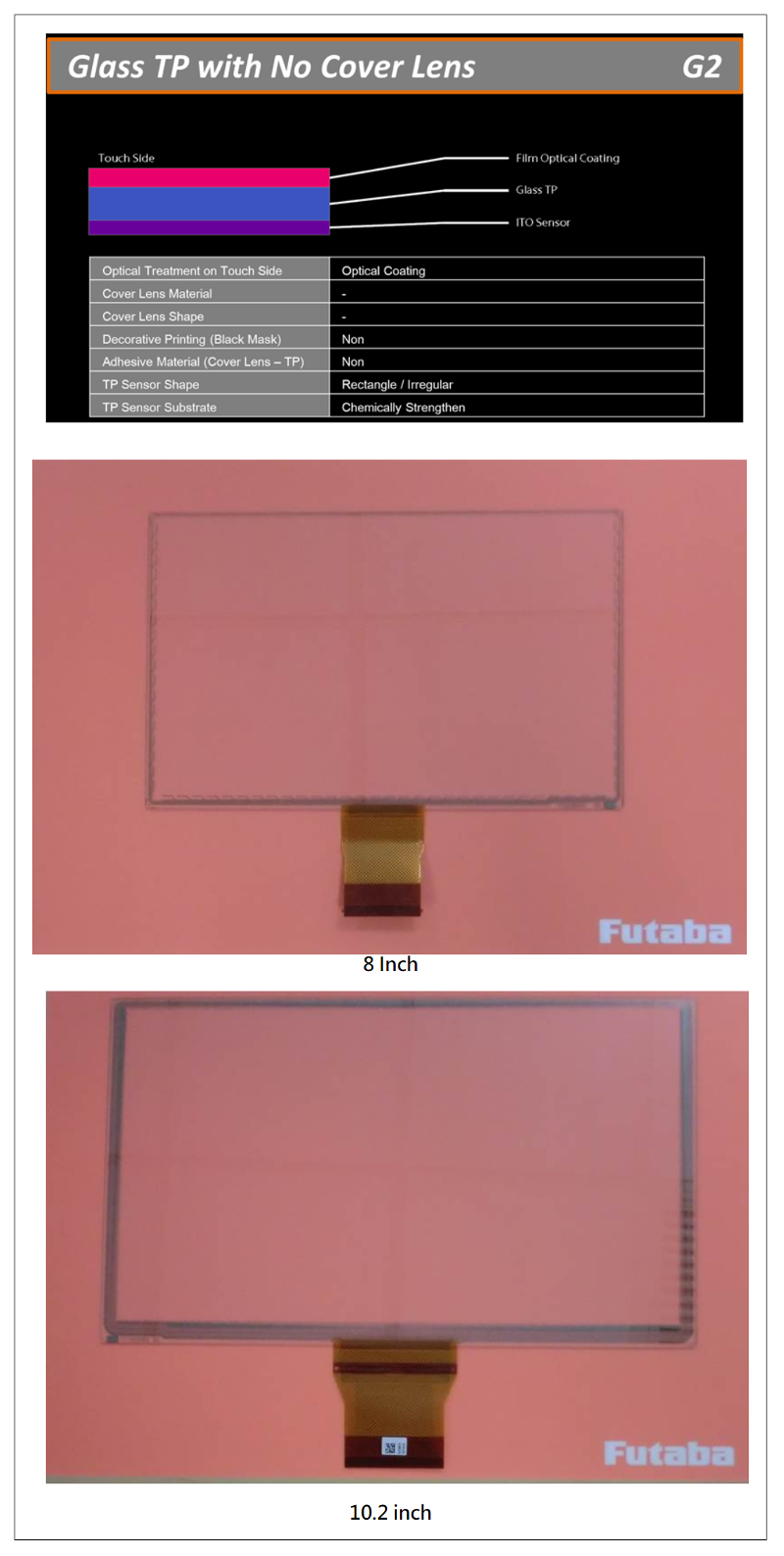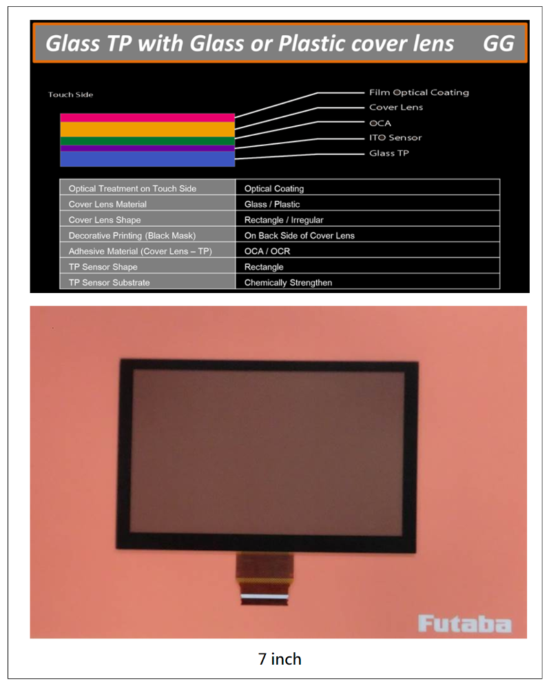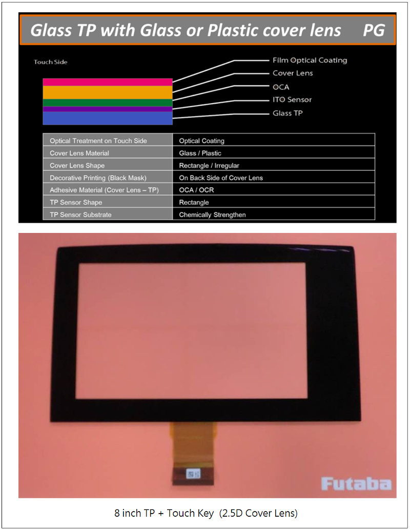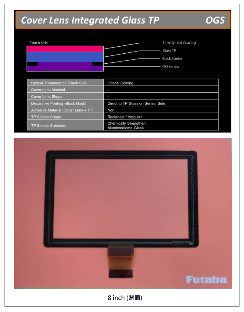 FUTABA专精于车载用投影式静电容量式触摸屏CTP开发设计与高品质生产管控能力;专供注重高品质与高规格需求之车载市场客户使用。