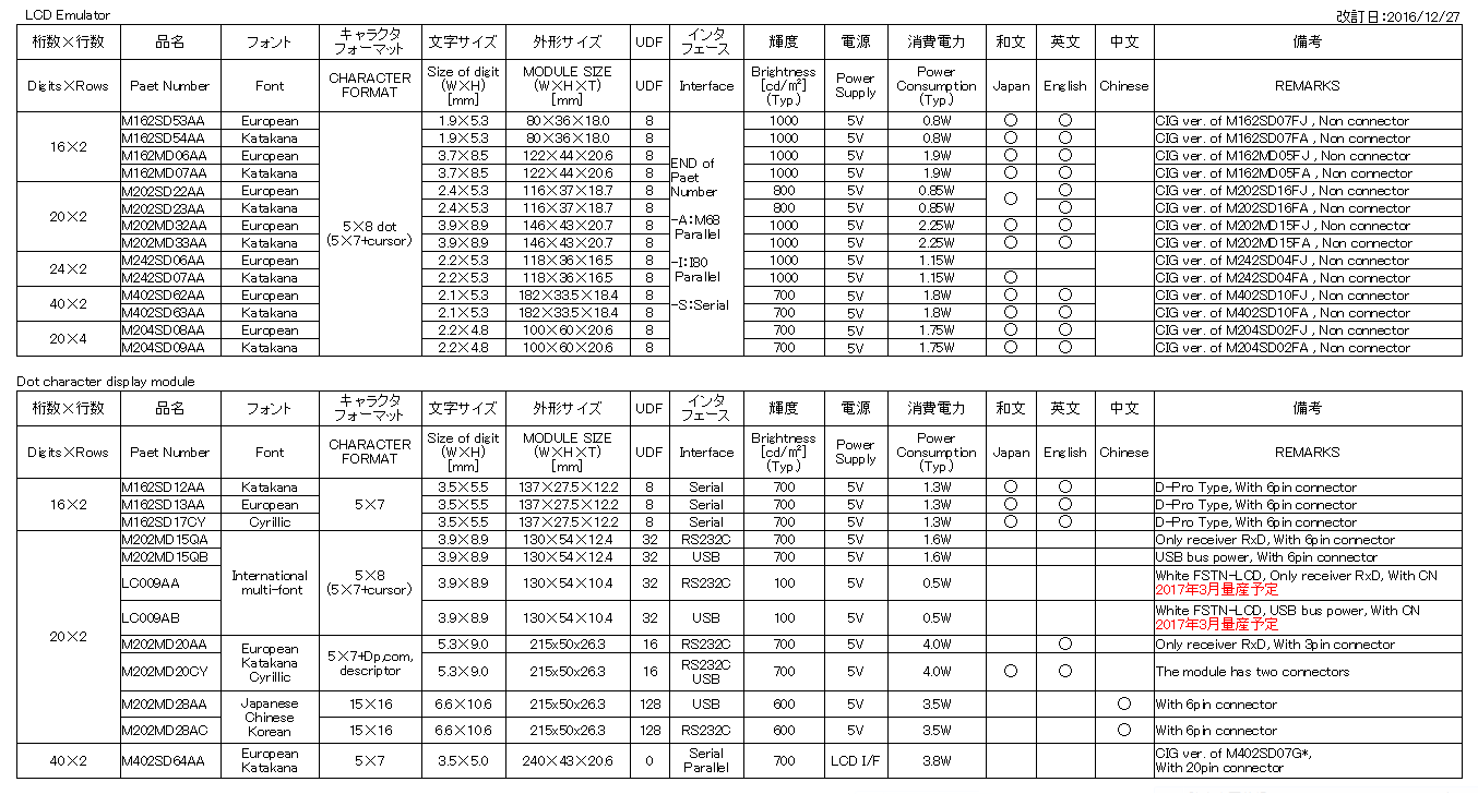 FUTABA Standard VFD Module List (5x7Dot) Ver201612_D_JP