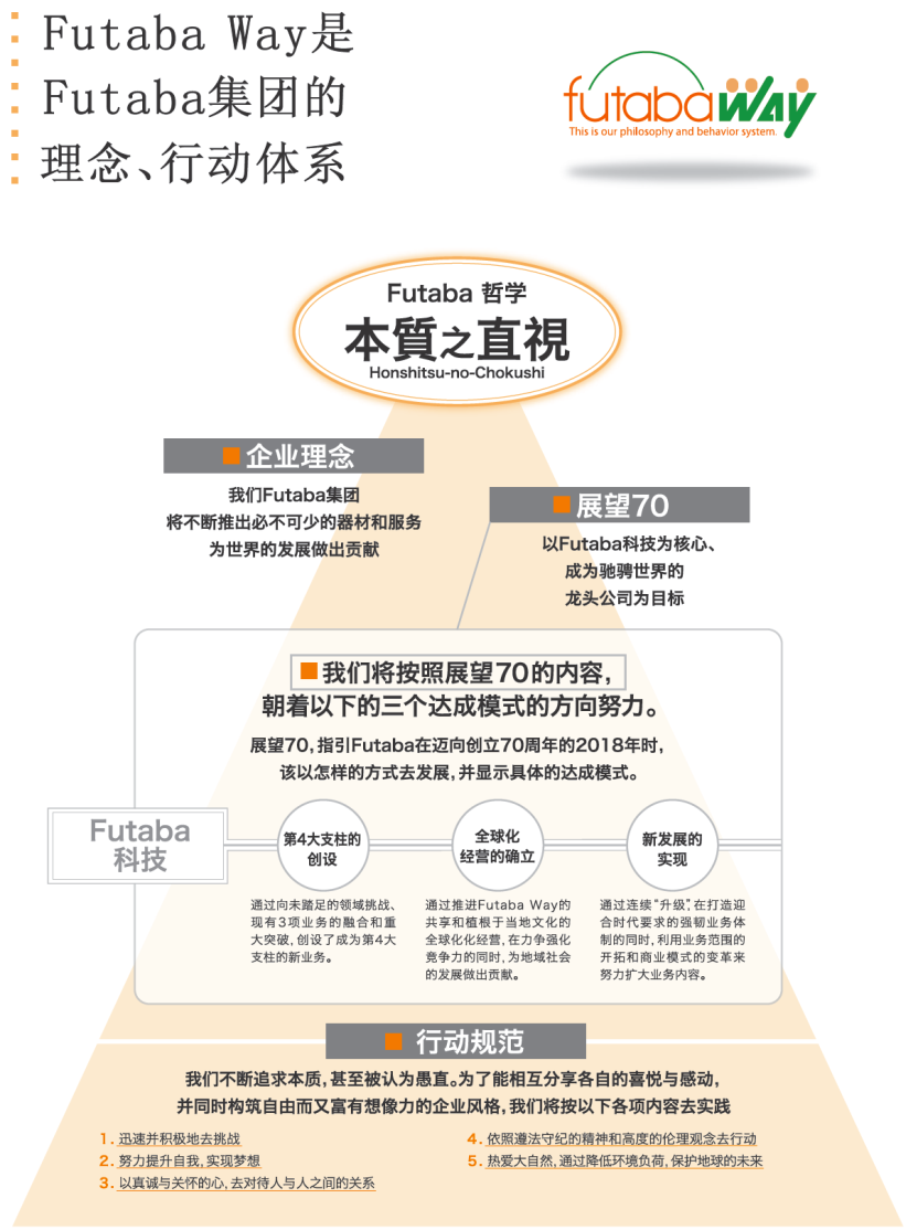 為此,我們確立了 "Futaba Way" -- 包括展望和行動規範在內的、我們的必走之路。
